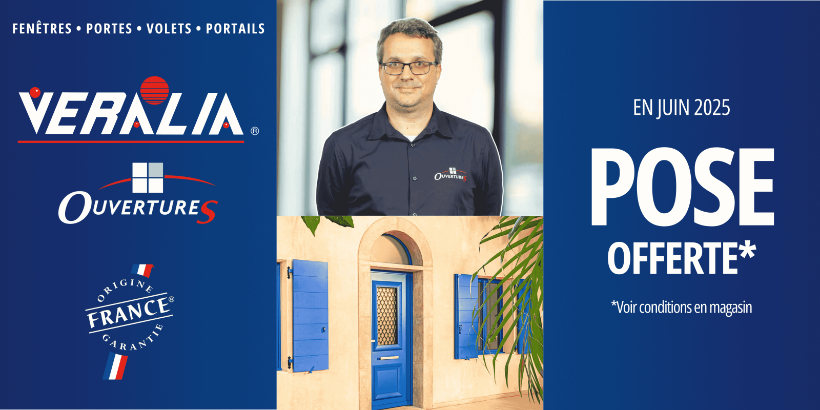 Juin : le début de l'été et des bonnes affaires. Ce mois-ci, Veralia vous réserve une belle surprise : la pose est offerte pour tout devis réalisé et signé entre le 1er et le 30 juin 2025, sur une sélection de produits de menuiserie ! Que vous souhaitiez installer de nouvelles fenêtres, changer vos portes, ajouter des volets ou sécuriser votre entrée avec un portail robuste, c’est le moment parfait pour concrétisez vos envies, sans frais de pose !